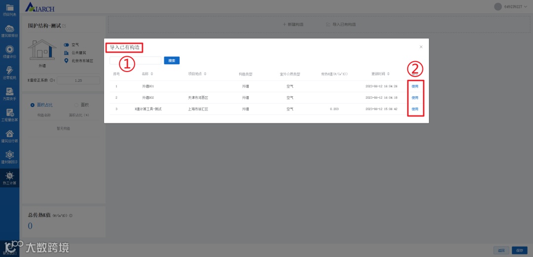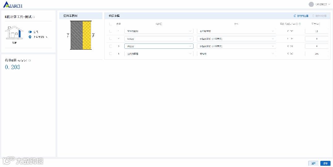 同时我们也可以在列表界面看到我们已经建好的围护结构K值是多少,方便使用者进行快速预览。