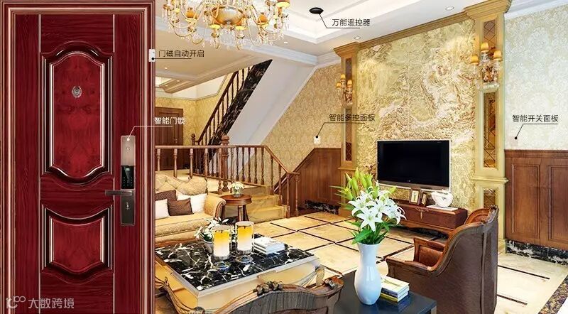 智能家居:一个遥控器或触摸屏就能掌控家中娱乐系统,电影开始时自动关闭百叶窗、调暗灯光。