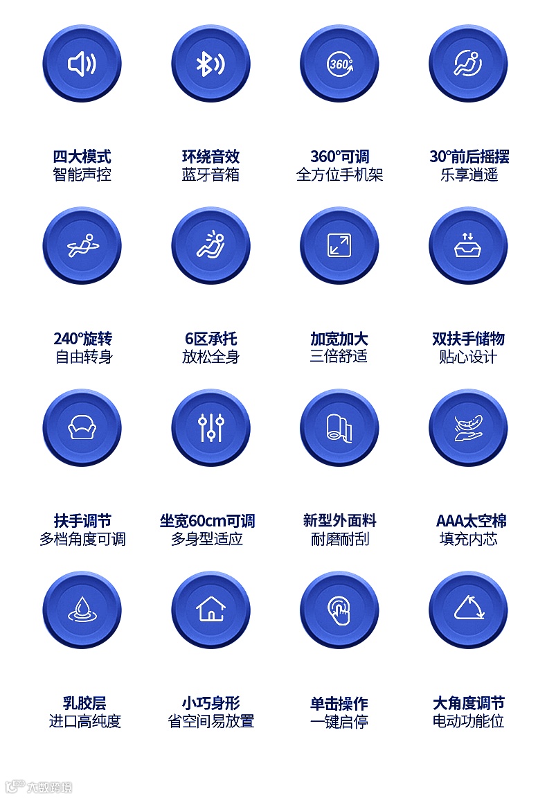 助眠沙发采用电动调节零重力设计,可以让身体保持一种类似于漂浮状态的姿势,减少身体对重力的感受;配备了内置音响系统,可以播放轻柔的音乐或自然声音,帮助用户更快地进入放松状态。