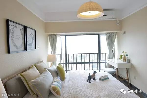 卧室旁有阳台的户型一定会比一般的卧室更有幸福感,每天能够在懒洋洋的阳光中醒来,床头背景墙布满了素色花纹,晚上睡不着的时候还能走到阳台抬头遥望一下星空,岂不是很浪漫。