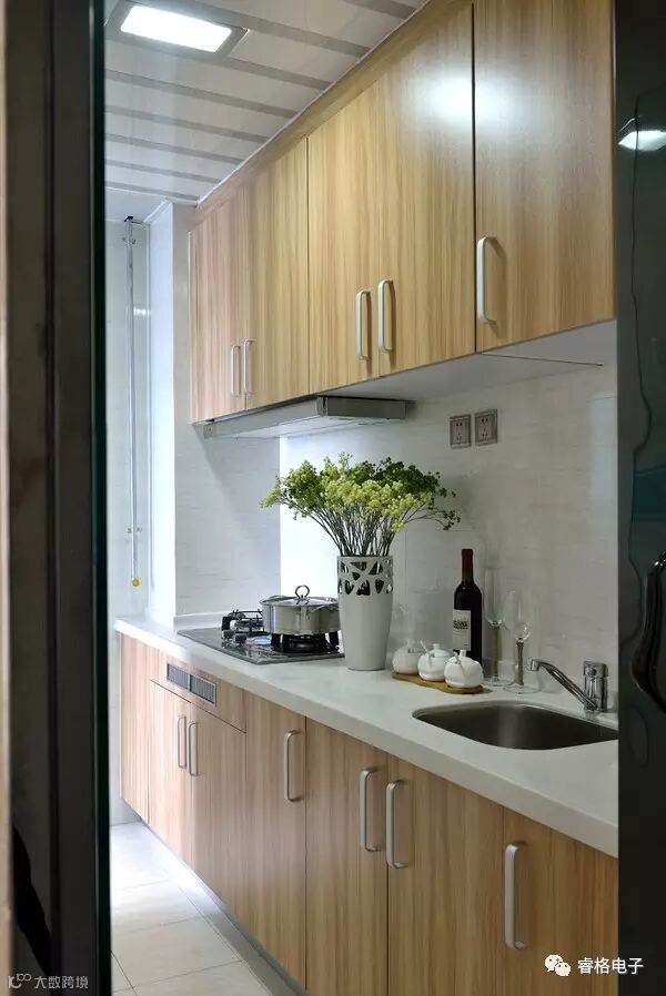 因空间面积所限,在这个几平米大的小厨房,格局的布置可谓做到了精致,工作时也有充足的光线,上下收纳橱柜设计,把用完的厨具全部藏起来,保持台面的干净整洁。台面上的绿植点缀其间,带来活力,美美搭设计师也将北欧风格讲究的实用性与功能性在这个厨房中得到了很好的运用与展示。