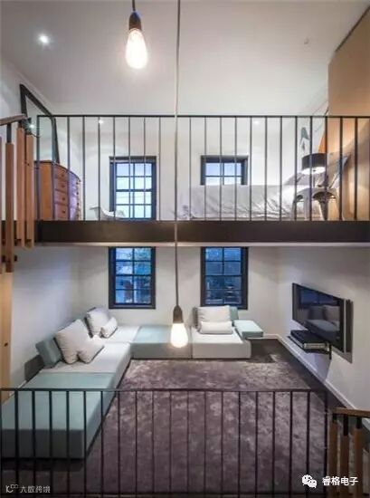 编辑点评:将半开放式的卧室装修在顶楼,让卧室这一比较私密的空间不会被访客“一览无余”,又能保留“开放式”带来的自由感。