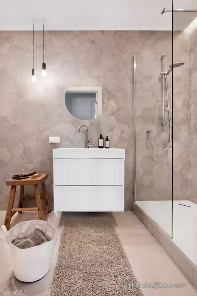 洗浴室利用大地色系的砖块带来舒适与清爽。