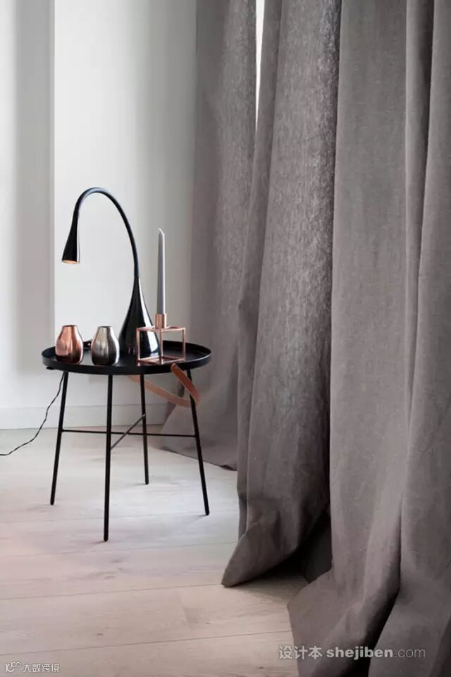 绒面的深灰色三人沙发显得柔软又舒适,利用毛毯与靠垫增添温暖的生活气息,而落地的灰色窗帘则在色彩上起到互相呼应的作用。
