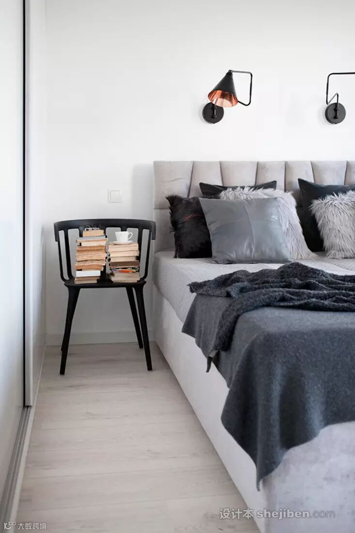 主卧在白色调的基底下利用灰色织品进行点缀,营造出静谧安宁的睡眠环境,黑色的置物凳与金属元素的装饰彰显出质感,床头堆叠的书籍早已被翻阅无数次,让生活的美好弥漫整个空间。