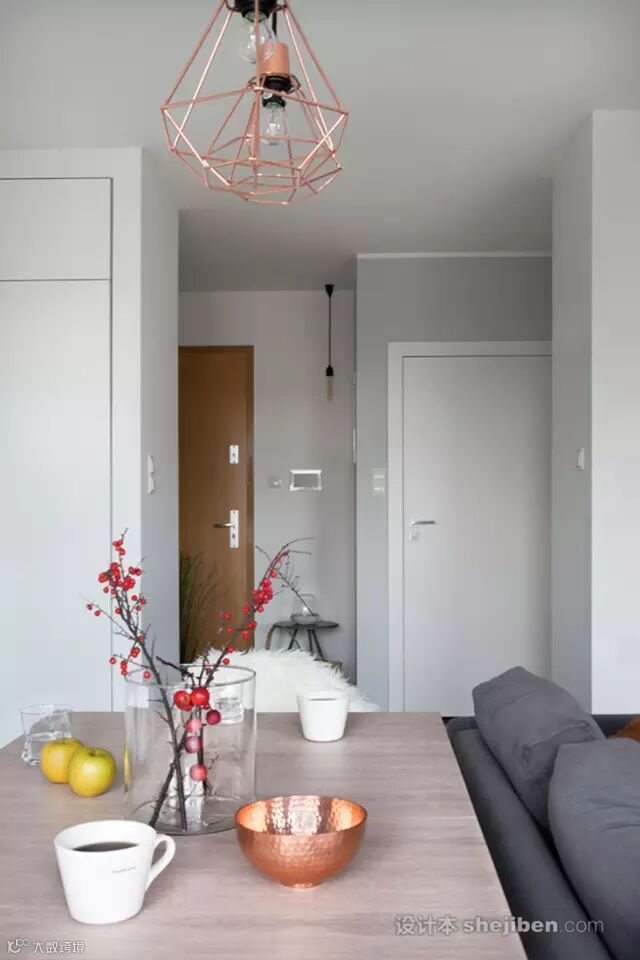 白色的厨房柜体拥有丰富的储物空间,在小面积的公寓里,储物则显得尤为重要,将杂物收纳妥当,营造视觉上的洁净与清爽。