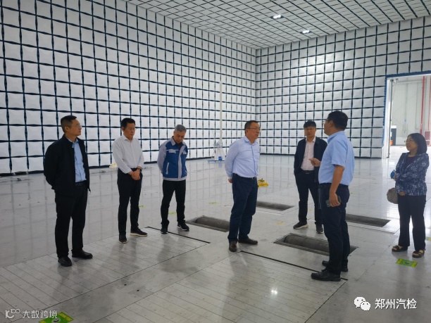 随后白厅长一行人到强检试验区各试验室一线查看设备运转情况。相关负责人介绍强检试验室的能力规划、技术参数、试验能力等。先后参观了电磁兼容试验楼10米法半电波暗室、整车排放试验楼整车VOC试验舱、轻毂试验台、密闭蒸发舱并针对试验室检测能力等细致观察,耐心询问。