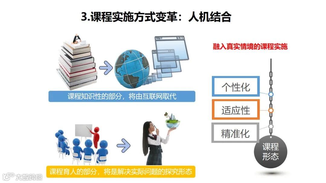 期间,北京师范大学教授、未来教育高精尖创新中心执行主任、国育未来教育科学研究院教育数智化研究中心首席专家余胜泉发表“智能时代未来学校课程变革”主题演讲。他指出,学校的形态与所处的时代紧密相连,现在面临着第四次智能生产工业革命,教育要因时而变。未来的学校教育改革将呈现虚实融合的课程形态、课程结构向跨学科知识整合改变、课程实施方式向人机结合转变、课程评价重发展性评价和课程基于数据治理五大特点。未来学校主题逐步成为探讨未来教育发展的新趋势,把握住未来教育改革对探索未来教育发展起至关重要的作用。