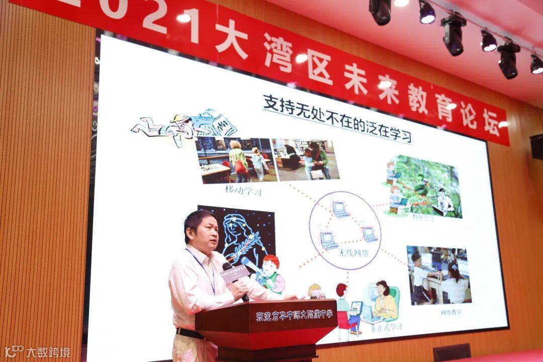 2021年10月16日,以“科技赋能未来课程与教学变革”为主题的“2021大湾区未来教育论坛”在华中师范大学东莞附属中学举办。本次论坛由北京师范大学未来教育高精尖创新中心主办,中国教育学会国际教育分会支持,华中师范大学东莞附属中学承办,多位教育领域的专家、学者及300多名大湾区基层教育工作者与会。论坛上,多位教育领域专家、学者从科技赋能教学工具、课程变革、作业设计创新以及教育评价等方面发表了主旨演讲,以不同视角阐述了未来教育课程与教学变革的关系和创新实践。