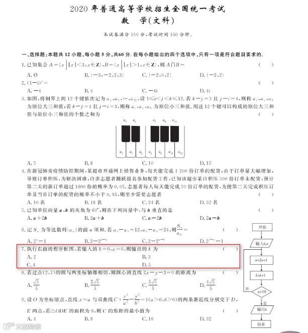 再来看看2020年全国二卷高考文科数学卷第七题: