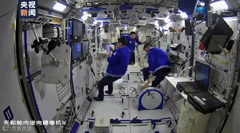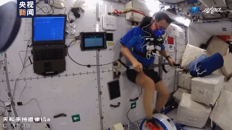 另外,为了对抗失重生理效应,航天员每天都需要进行体育锻炼。最近这段时间工作强度有所降低,三位航天员有了更多的时间开展体育运动。