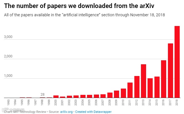 2015 年,TensorFlow 开源。一年后,Facebook AI 又开源了基于 Python 的深度学习框架 PyTorch。今天,TensorFlow 和 PyTorch 已经成为使用最广泛的框架。通过不断的版本更新,谷歌和 Facebook 为机器学习社区带来了极大便利。自定义库、软件包、框架和工具的爆发式增长,使得更多人进入了 AI 领域,也为 AI 研究带来了更多人才。