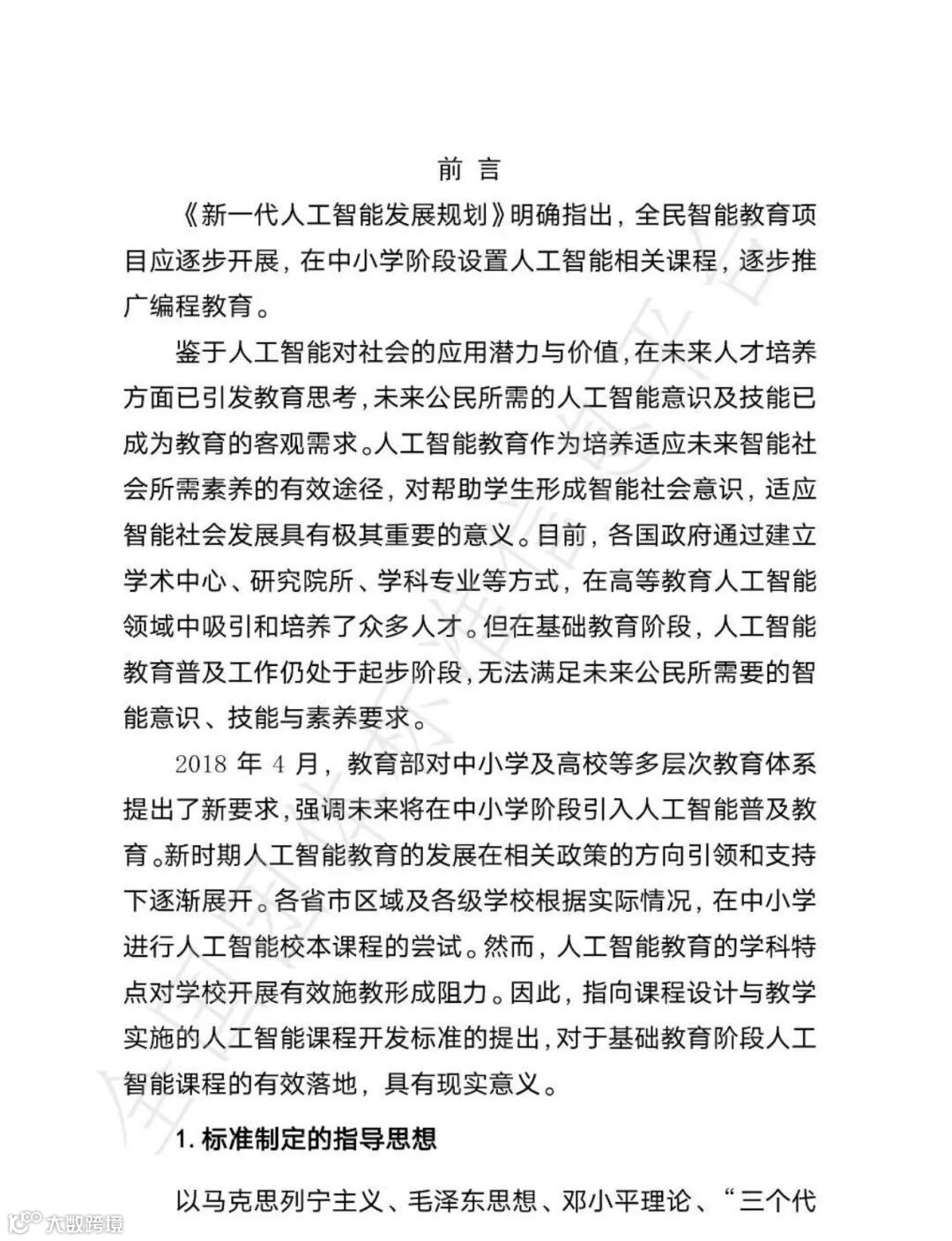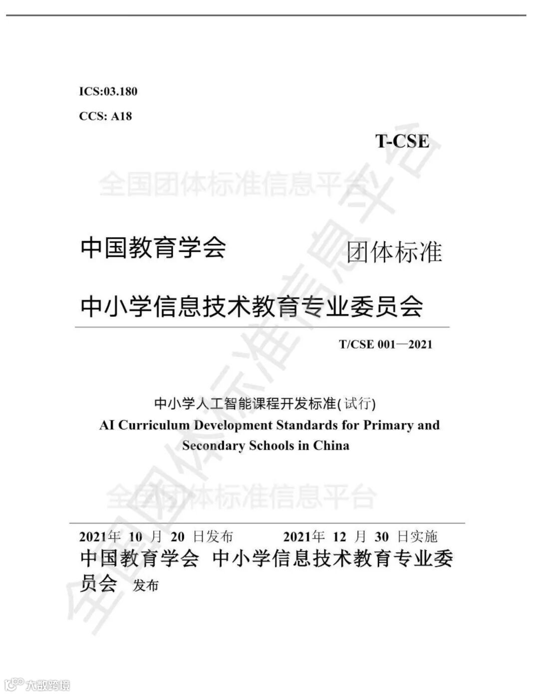 近日,中国教育学会中小学信息技术教育专业委员会发布《中小学人工智能课程开发标准(试行)》,此《标准》于2021年12月30日已经开始实施。