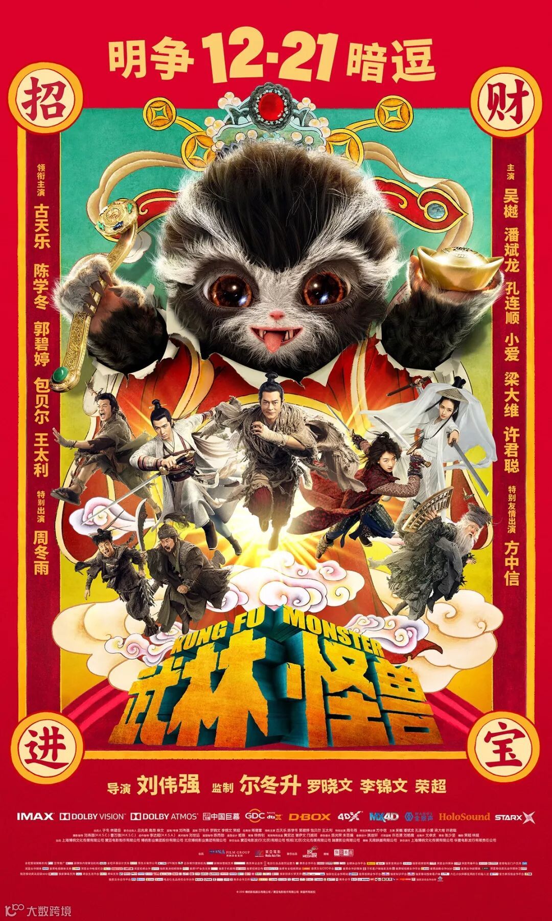 武侠魔幻喜剧片《武林怪兽》由刘伟强执导,尔冬升、罗晓文、李锦文联合担任监制。古天乐、陈学冬、包贝尔、郭碧婷、王太利领衔主演,周冬雨特别出演。2018年12月21日在全国影院中国全景声影厅上映。