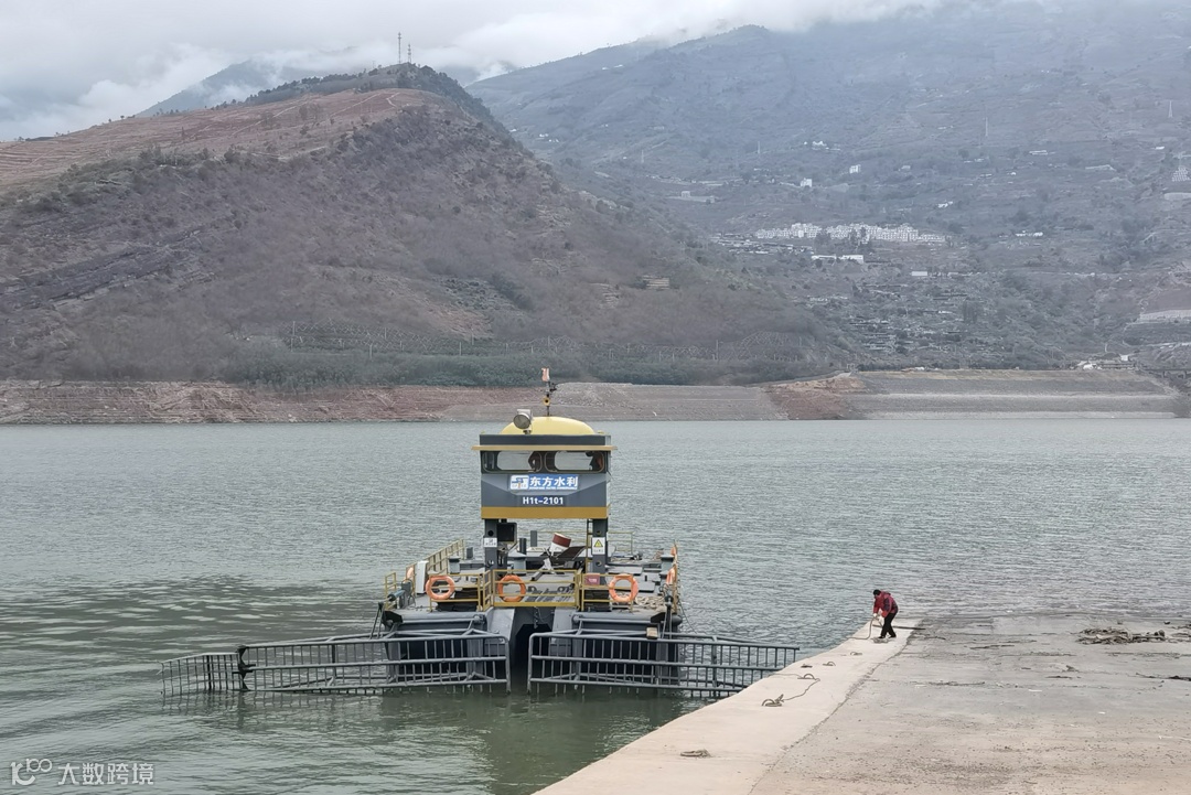 随后,在向险峰的带领下进入到公司白鹤滩清漂项目部,介绍了团队成员,他们中最重要的成员,当然莫过于我们的“河宝”机器人兄弟们啦。参观了堆场漂浮物打捞、分拣、破碎、运输的整个过程,以及“河宝”DF-H1、H2型水上清污机器人的工作内容,航行在金沙江上动力十足,机器人们宛如一个个身披铁甲的战士,日夜坚守在白鹤滩。