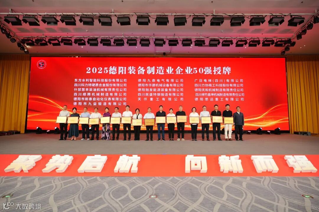 4月17日下午,德阳市企业联合会、德阳市企业家协会年会暨2025德阳企业50强发布会隆重举行。四川省企业联合会党委书记、省企联第九届理事会会长、第十二届省人大常委会副主任彭渝,德阳市委副书记、市长黄朝阳,市委副书记、统战部部长、市总工会主席朱莉等领导出席会议并为50强企业授牌。会上,东方水利凭借自身综合实力和行业贡献,成功入选“2025德阳装备制造业企业50强”榜单。