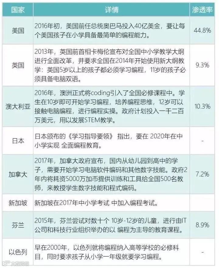 根据《2017开发者技能报告》,我国的少儿编程教育普及率仅为0.96%,远远低于世界发达国家。