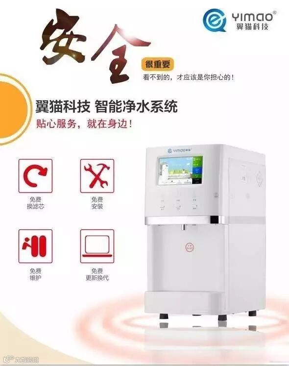 翼猫科技首款智能净水系统,从国内饮水状况出发,制定0元供机的新模式,免费安装、免费换滤芯、免费维护、免费升级换代!用户只需预充净水服务费,按流量或包年计费,可以像使用传统水、电、煤一样便捷地享受翼猫科技高品质水服务。3000家体验服务中心网点分布全国,保障每一秒,每一滴的翼猫水的水质安全。