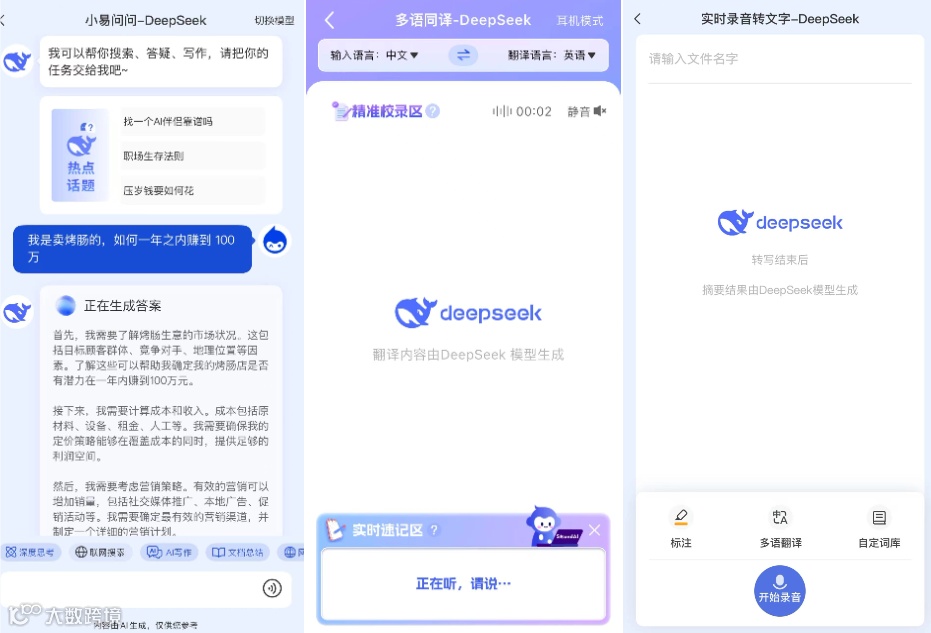 除此之外小易写作、多语翻译、录音转写等AI功能全部支持模型切换,使用DeepSeek时也不会出现卡顿和不流畅的情况,让使用体验全方位升级!