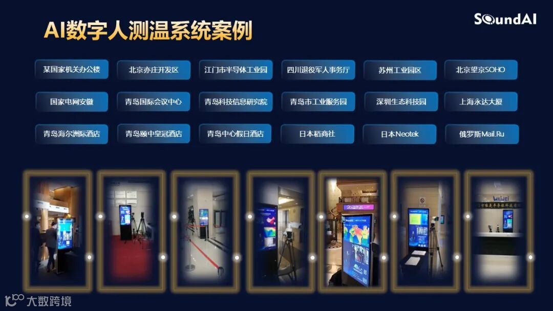 声智AI数字人红外测温系统已经落地北京、青岛、四川、安徽、广州、日本、俄罗斯等海内外近百个城市的机场、学校、办公大厅、写字楼,帮助做好公共场所体温筛查,守护公共安全健康。