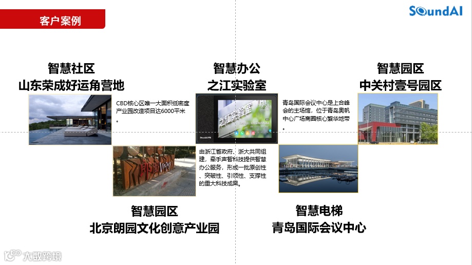 声智聚焦智能家居和智慧园区等智能新生态,提供智能麦克风/耳机/音箱/灯、智慧办公/医疗屏、AI数字人红外测温系统、智慧电梯和安全监管平台、声纹采集与分析系统、语音转写与同传系统、多屏智能网关与语音指挥系统、违法鸣笛电子警察、多形态虚拟数字人、物联网中台和服务、大数据分析和商业智能等丰富应用,提升行业的智慧化程度,释放个性化体验。