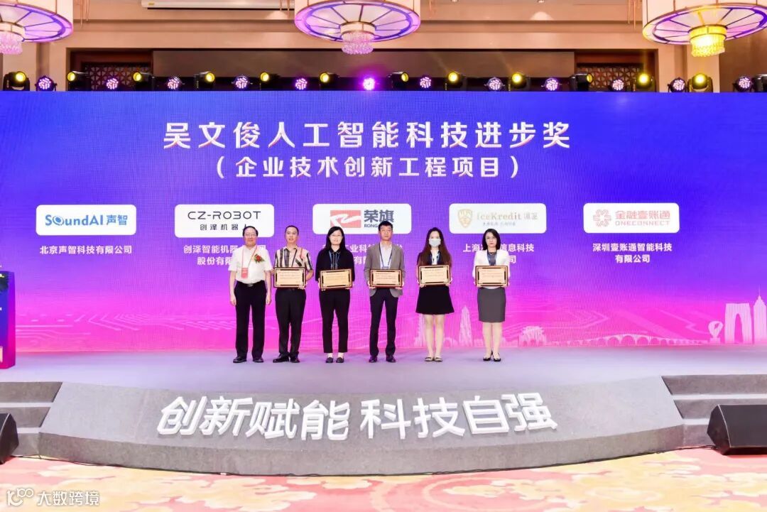 凭借Azero系统研发与应用创新工程,声智科技获得吴文俊人工智能科技进步奖(企业技术创新工程项目),欧洲科学院外籍院士、CAAI脑科学专委会主任蒋田仔为声智颁发奖项。