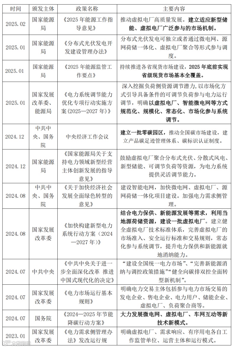 近期,国家频繁发布支持虚拟电厂政策,汇总如下: