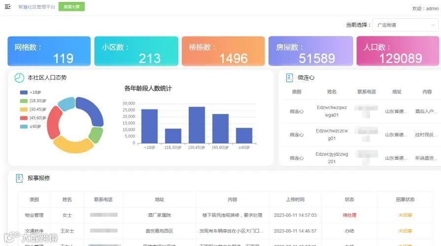 运用数据+决策。通过人员走访、电话核查、数据对接等,形成覆盖基础、民生、综治、党建、特色等5大领域的专项数据库,实现智慧社区基础要素规范化管理。目前,已完成13万余条人口数据,1万余条房屋、车、企信息,3000余条党建组织信息录入。