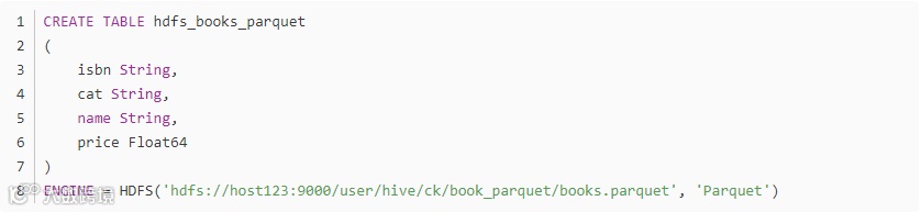 在ClickHouse查询 hdfs_books_parquet 表: