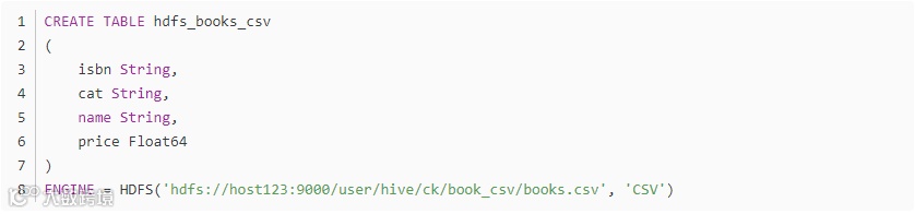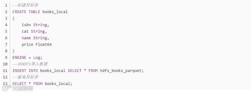 以上的操作是从HDFS上直接查询数据,也可以将读取的数据加载到ClickHouse的本地表。