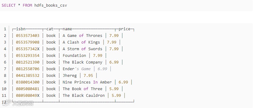 查询hdfs_books_csv表: