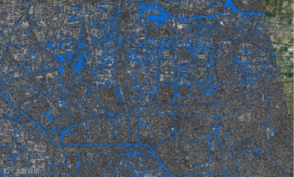 ● 利用7月21日ICEYE数据提取的水域和洪灾前水域对比分析,黄河与郑州市区域发生较大范围淹没。