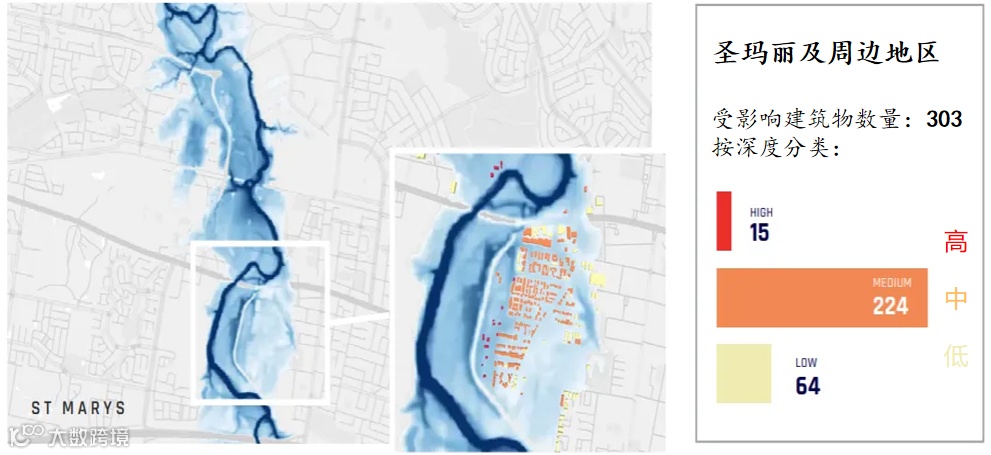 按深度分类受影响建筑物总数:303