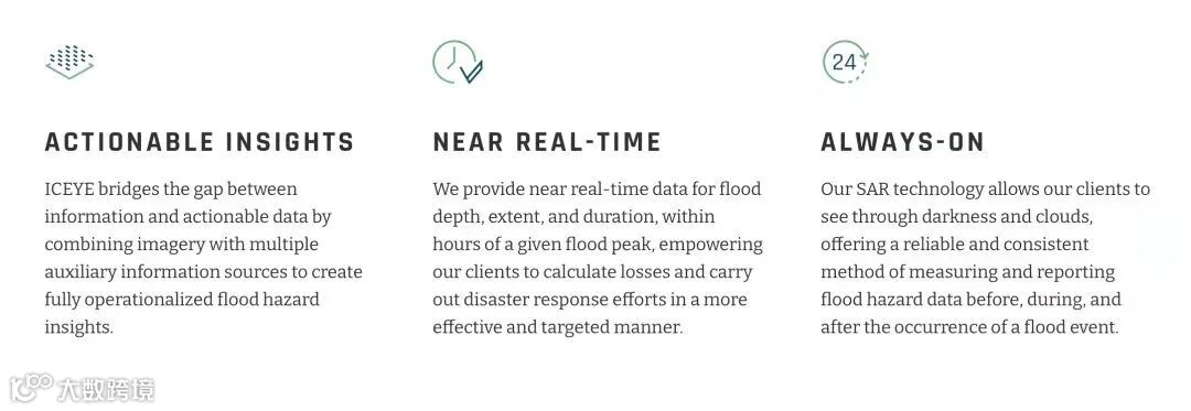ICEYE不仅有可靠的上游卫星影像及数据,还开始向下游拓展,提供解决方案。ICEYE目前拓展了提供洪水监测解决方案,在洪水监测方面有着自己的优势。