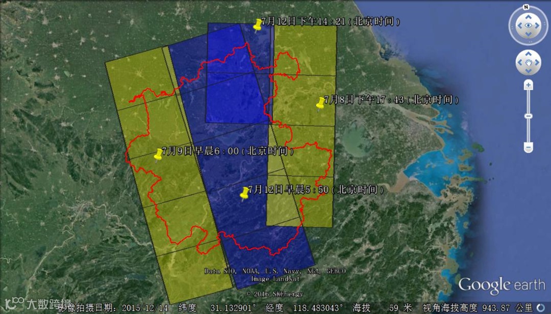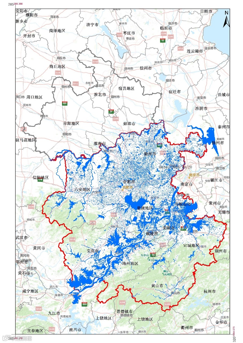 针对淮河以南区域的洪涝应急需求,于3个有效工作日内完成拍摄,并提供有效的洪水淹没面积矢量,为安徽的洪涝灾后评估做出了重大贡献。