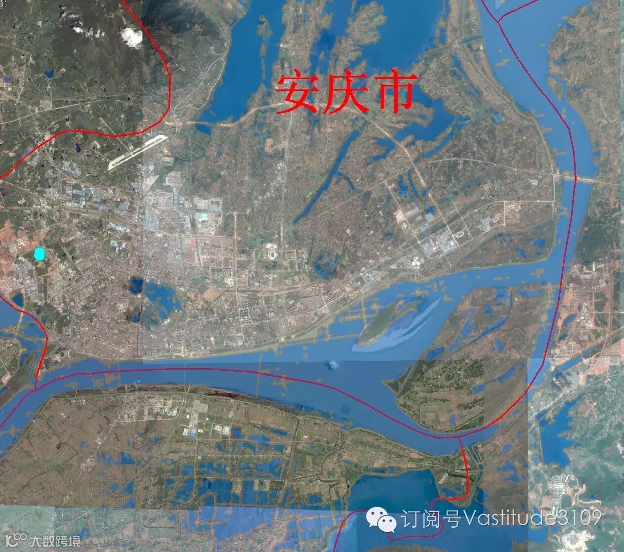 下图为叠加光学影像的安庆市部分区域局部放大的洪水淹没形势图: