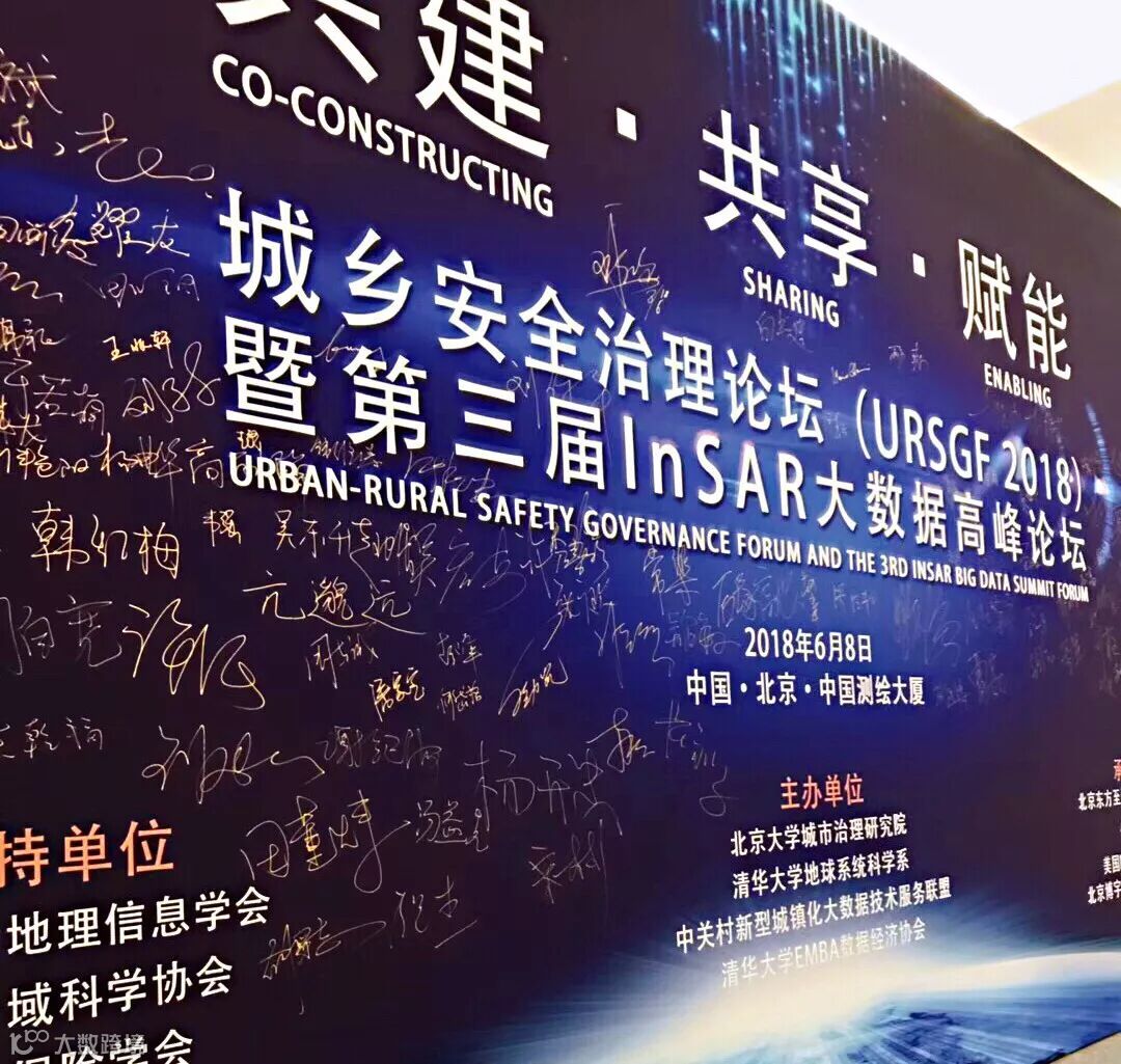 2018年6月8日,城乡安全治理论坛(URSGF2018)暨第三届InSAR大数据高峰论坛在中国测绘大厦召开。本次论坛由北京大学城市治理研究院、清华大学地球系统科学系、中关村新型城镇化大数据技术服务联盟和清华大学EMBA数据经济协会联合主办,中国测绘地理信息学会、中国区域科学协会、中国保险学会和中国城市治理创新联盟支持,北京东方至远科技股份有限公司承办,并得到了美国DigitalGlobe公司和北京博宇智图公司的大力协助。