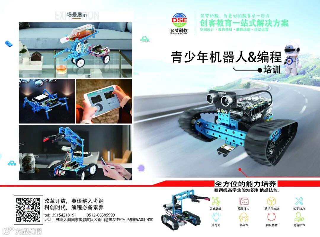公司专注于4-16岁青少年儿童STEAM教育和创客教育培训以及校园智慧项目建设,创客教育项目主要有:幼儿STEAM教育、中小学生编程、创意机器人和小小建造师培训业务。我们以学生的好奇心和创造力为核心,依据国际公认的STEAM教育理念,利用积木搭建、机器人和软硬件等项目进行学科学习,培养孩子的学科知识、探究精神、创新思维和动手实践能力等综合素养,让孩子的世界不再只局限于电视屏幕,最终培养学生自主学习意识和创新思维。同时公司也是TCL商用产品江苏区总代(产品:会议平板、智慧黑板、电子班牌、教室护眼灯、信息发布屏)。智慧校园项目主要有创客教室、智慧教室、教育软件开发等。