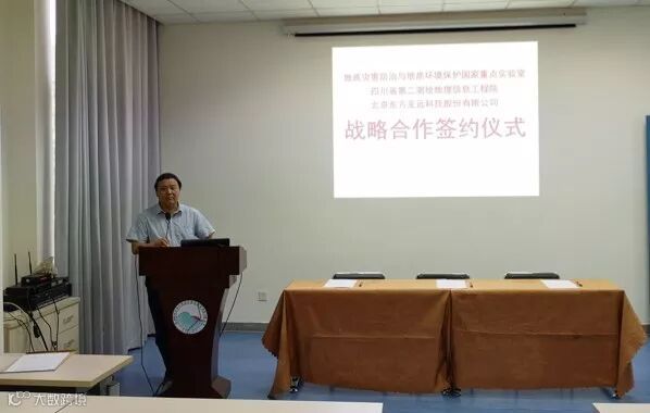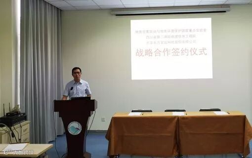 接下来由四川省第二测绘地理信息工程院文学虎副院长致辞。文院长认为,本次合作是国内InSAR技术产学研结合的一次标志性事件,是InSAR技术产业化应用的一次有力推进。三方合作具有前瞻性、战略性和广阔的实际应用前景,此次合作必将为我国地质灾害防治新技术推广、人才培养和减灾防灾救灾工作发展架起测绘与灾害防治的桥梁。
