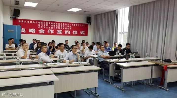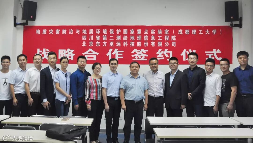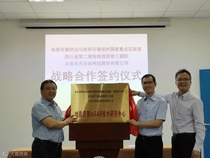 2018年9月9日,地质灾害防治与地质环境保护国家重点实验室(成都理工大学)、四川省第二测绘地理信息工程院、北京东方至远科技股份有限公司等3家单位在成都理工大学启动“战略合作”签约仪式,联合成立“地质灾害 InSAR技术研究中心”并揭牌,围绕InSAR技术在地质灾害防治应用作了主题报告并进行探讨交流。重点实验室副主任许强教授、工程院文学虎副院长、东方至远李吉平董事长以及三方相关领导等30多人参加了本次会议。
