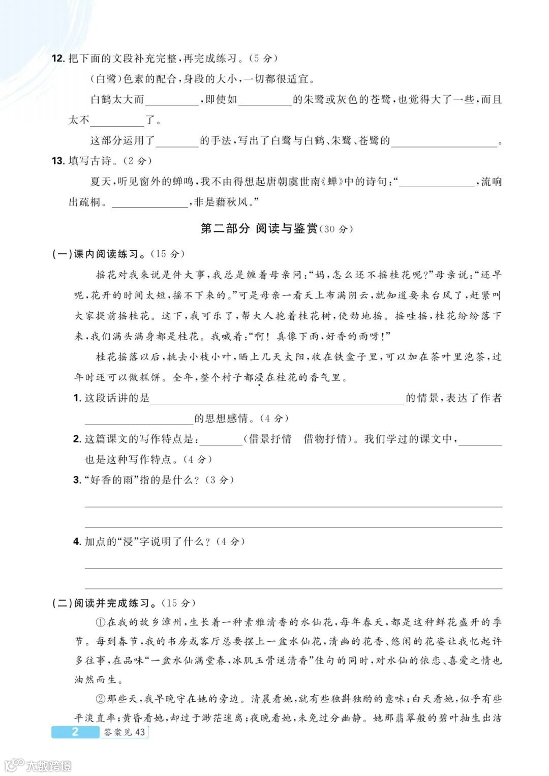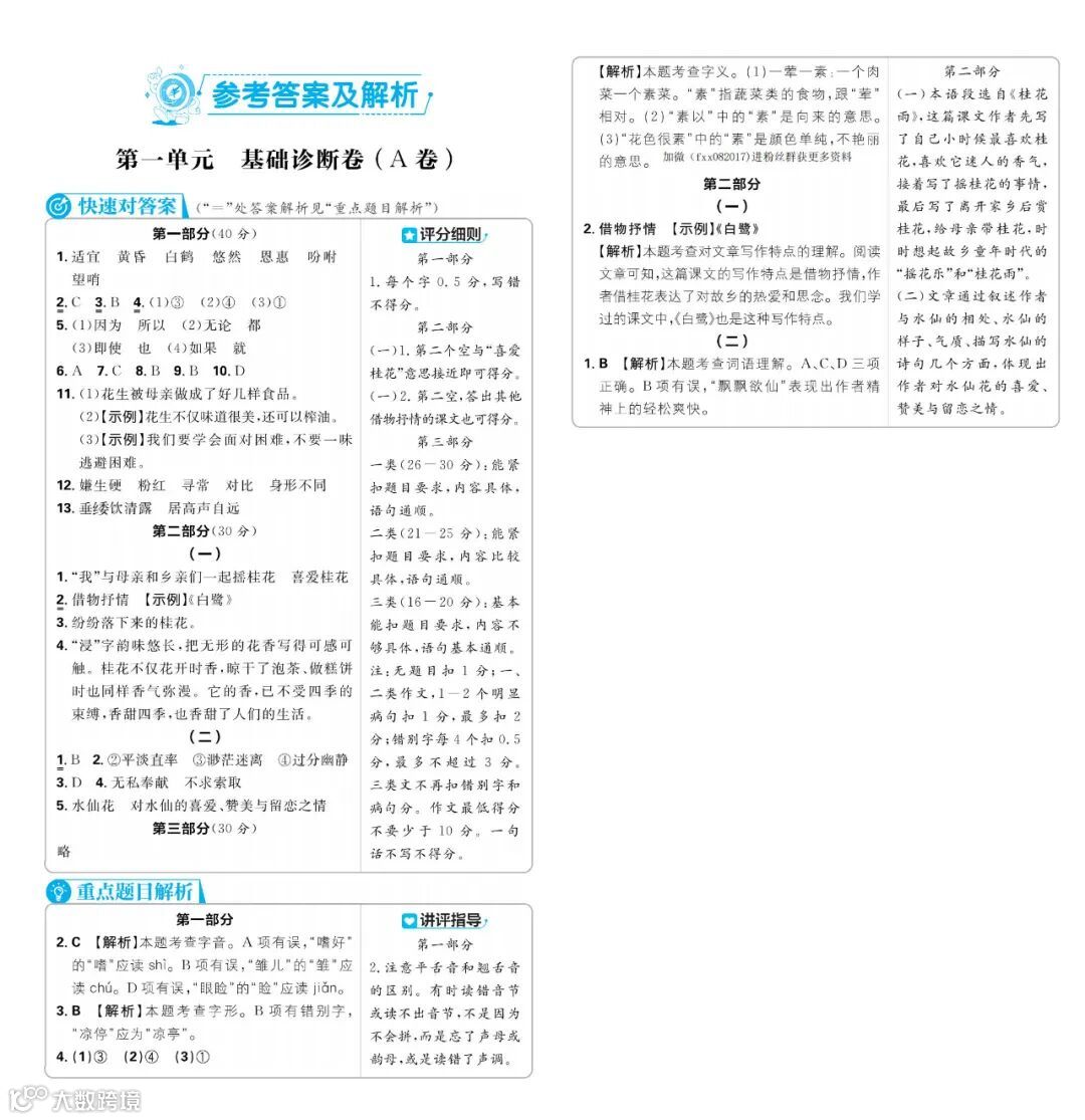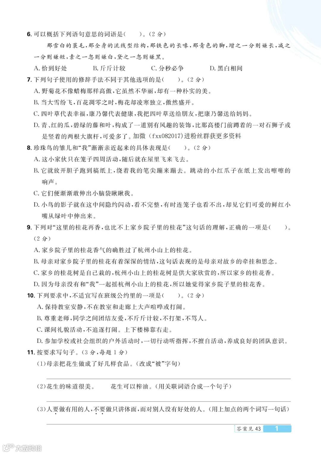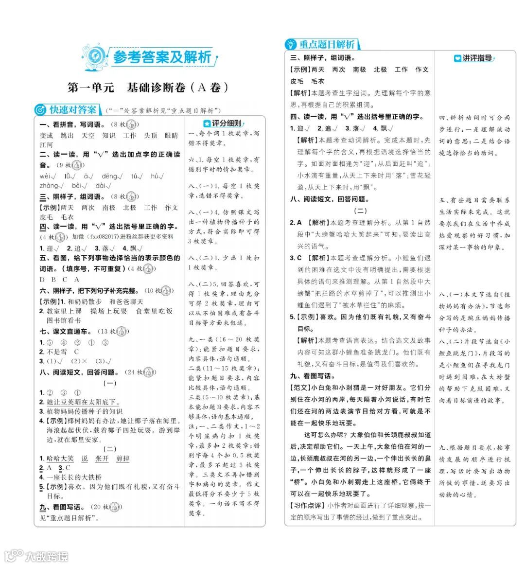 数智教师2024秋,小学1-6年语文1单元检测卷(含答案)可下载