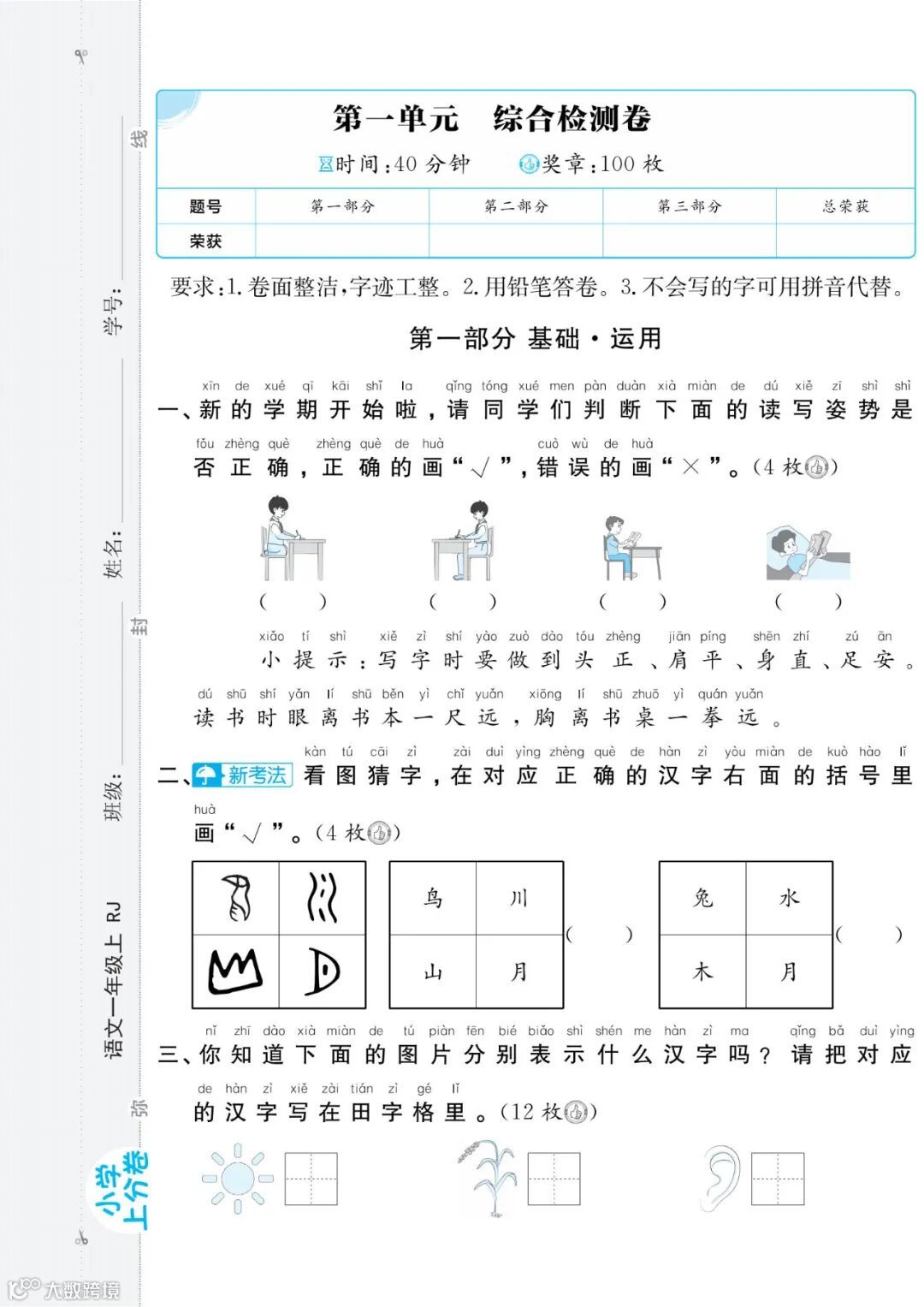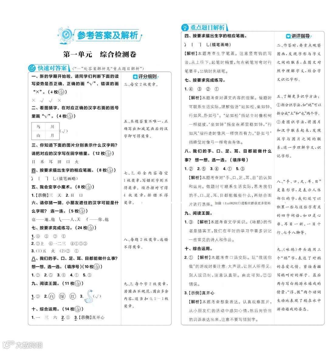 2024秋,小学1-6年语文1单元检测卷(含答案)可下载