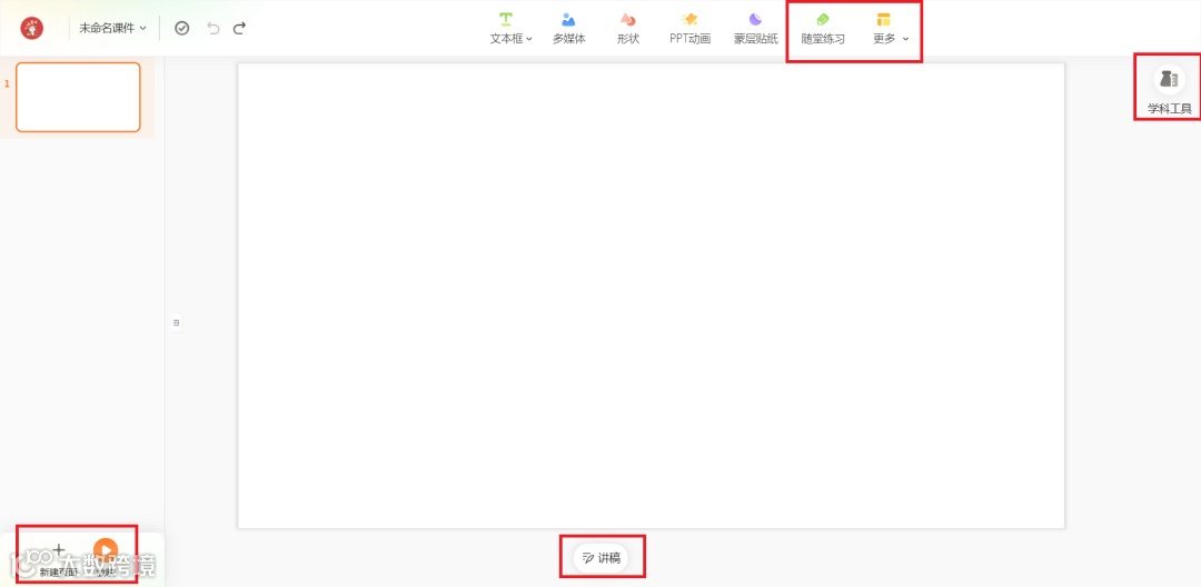 通过右上角的“新建互动课件”,教师可以在线编辑并保存课件。