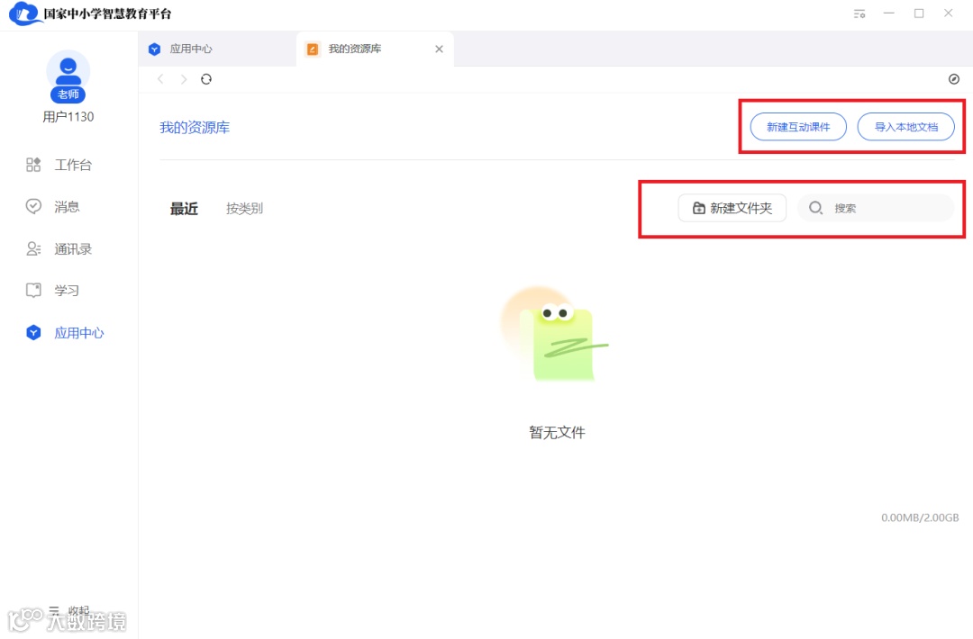 在“我的资源库”,教师可以新建、保存并管理教学工作时使用的各类文档。