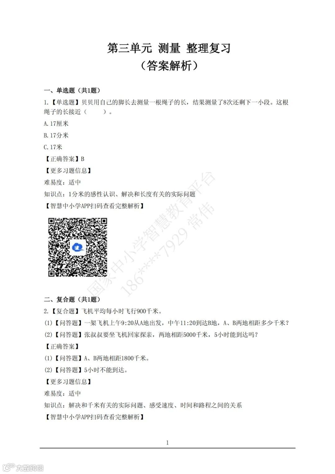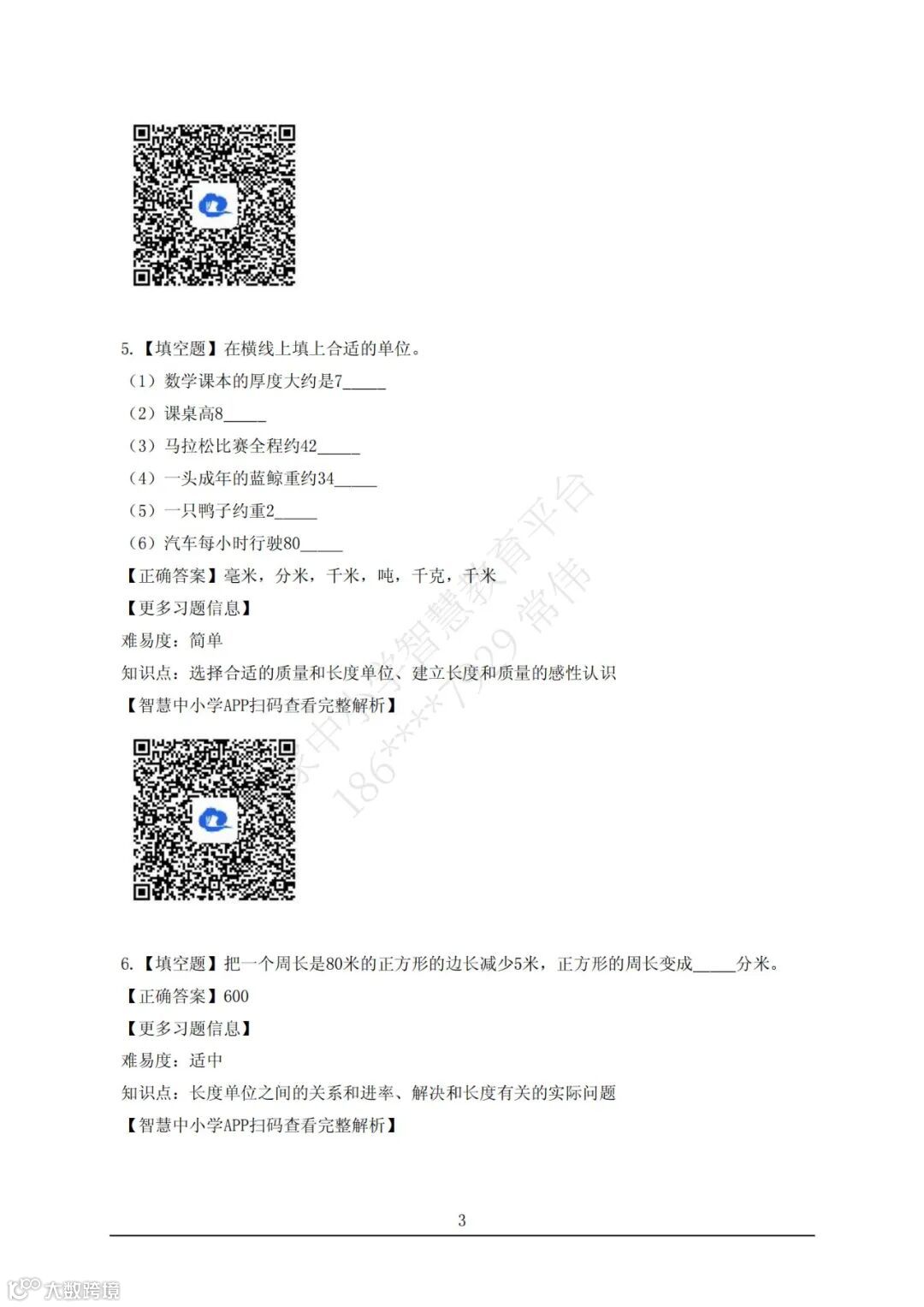 【智慧试题】三年级数学上册 第三单元 测量 整理复习 答案解析