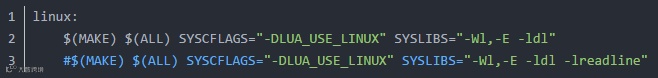 在 src/luaconf.h 去掉 readline 依赖。打开文件找到以下位置并注释对应行。