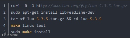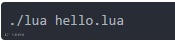创建一个内容为 print(“Hello World!”) 的 hello.lua 文件,执行以下命令即可看到运行效果。