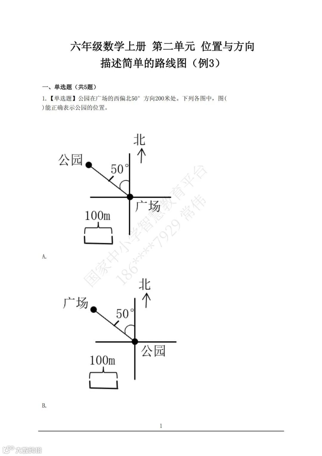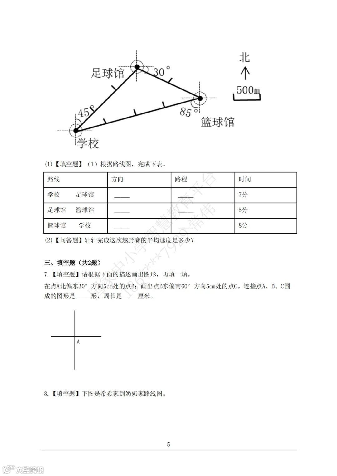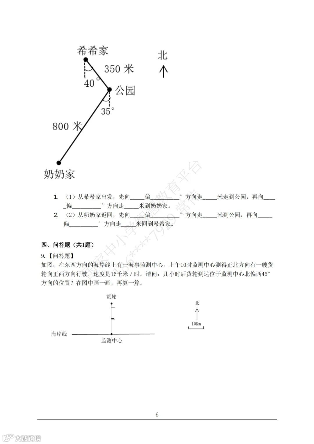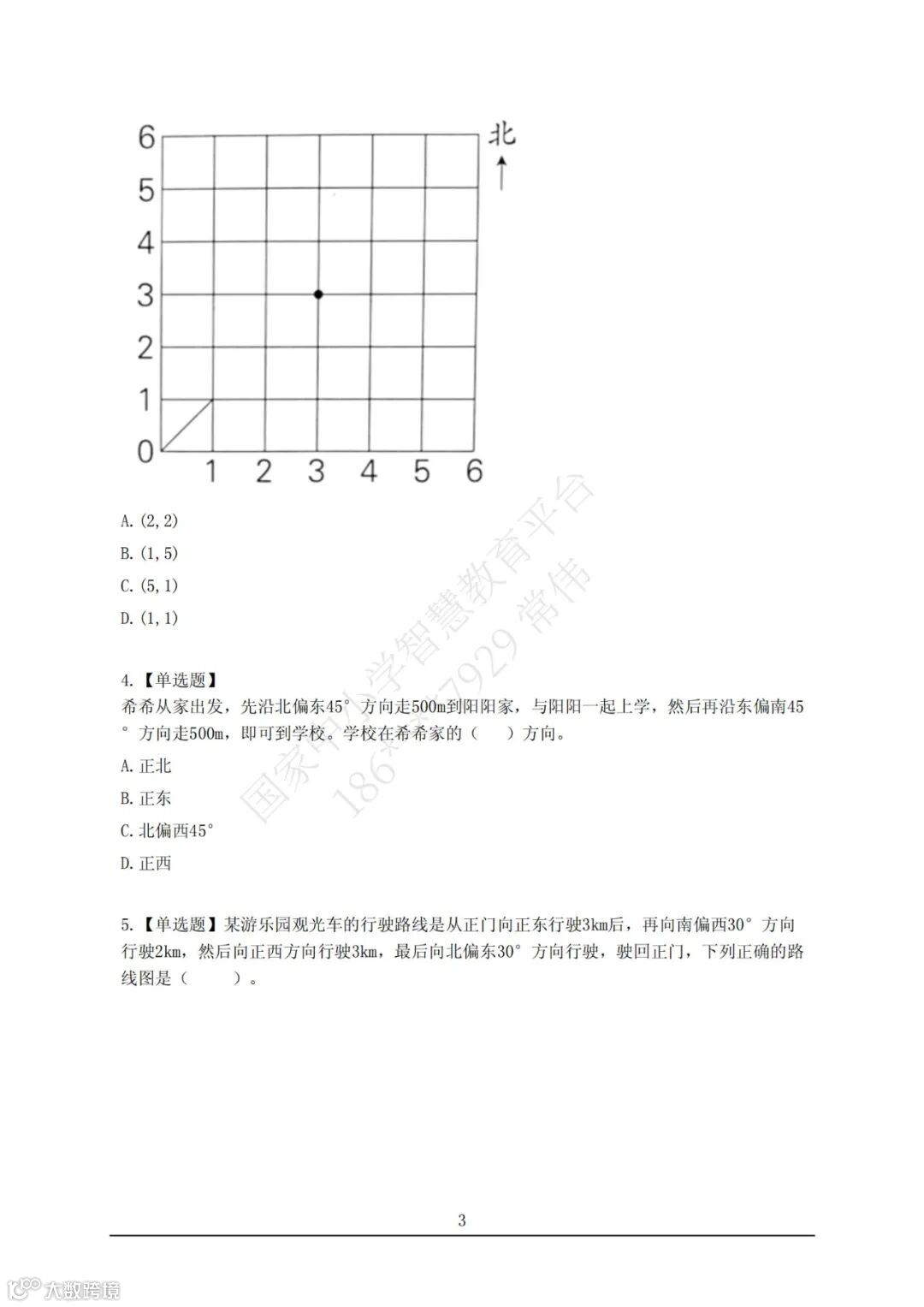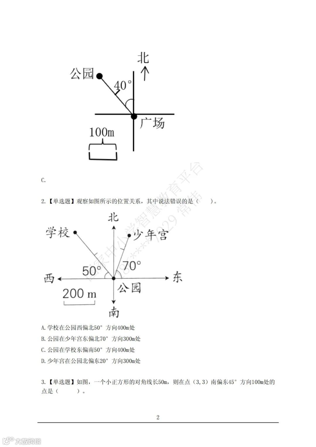 【智慧试题】六年级数学上册 第二单元 位置与方向