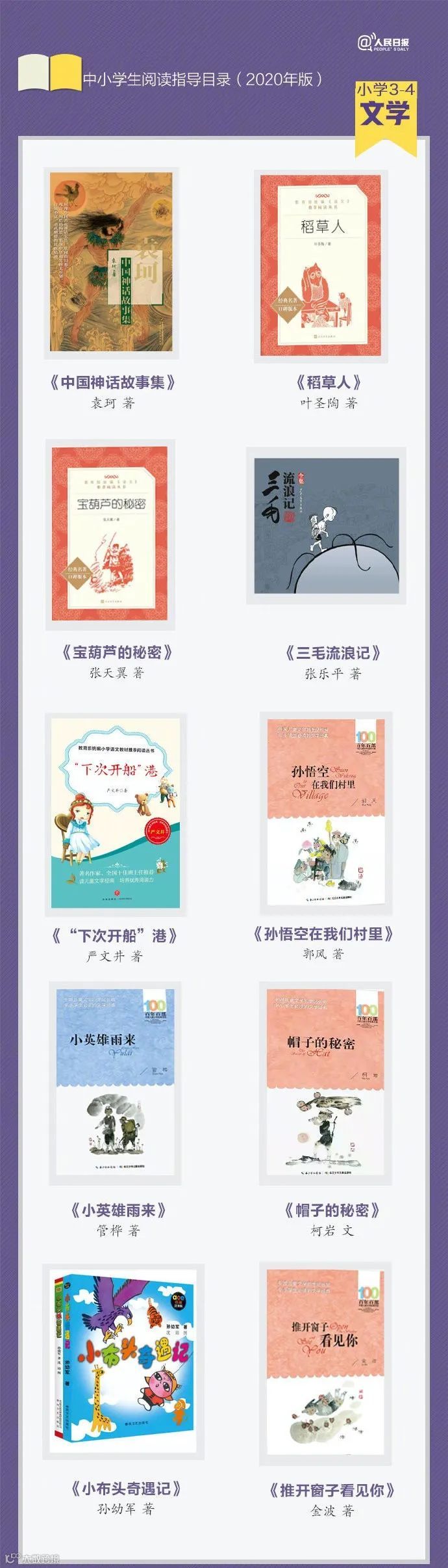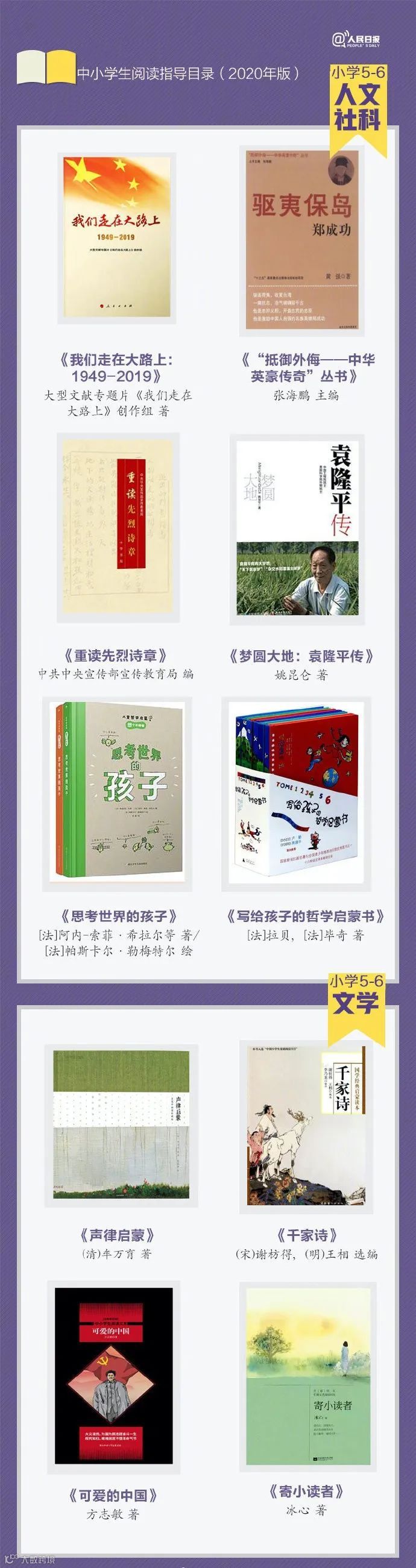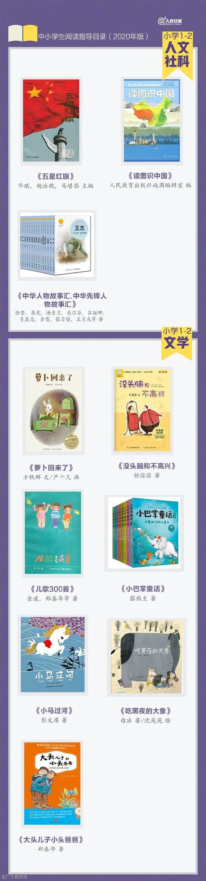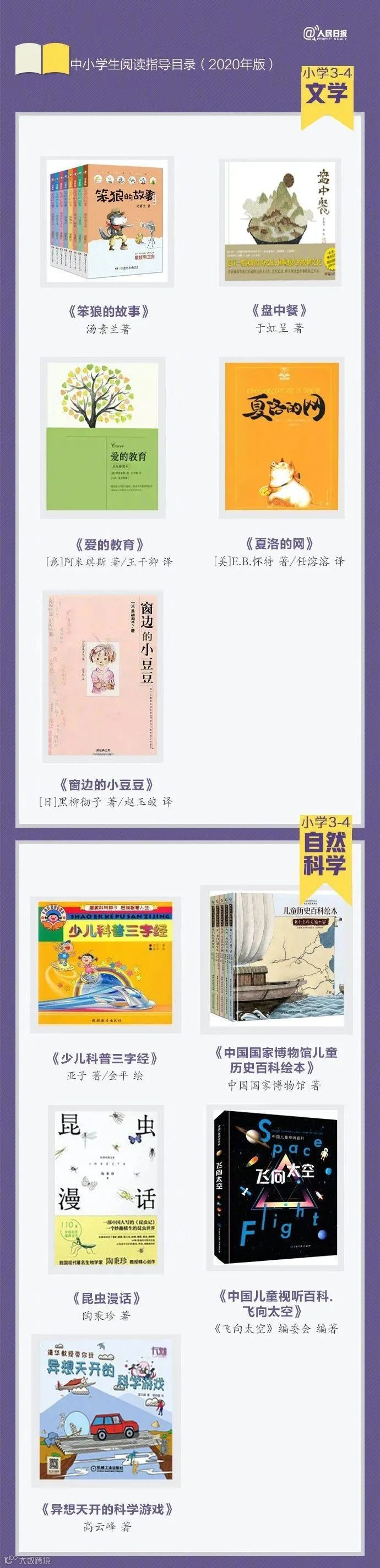 今天,我们为大家带来一份人民日报推荐的阅读书单,这份书单是教育部基础教育课程教材发展中心推出的2020年中小学生阅读指导目录,非常权威,是妥妥的假期课外阅读选书指南,记得收藏和转发分享哟!