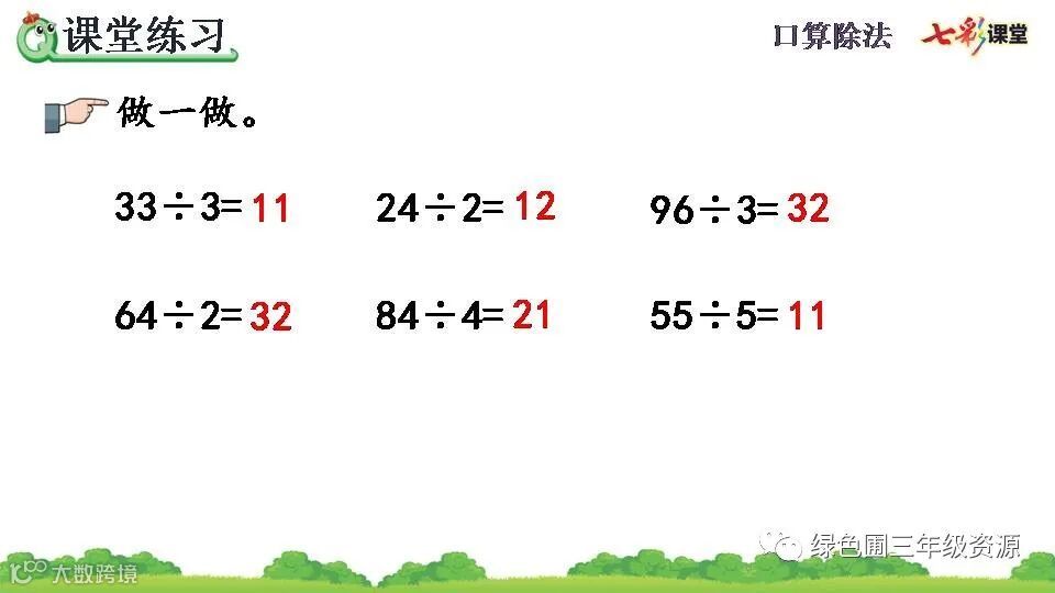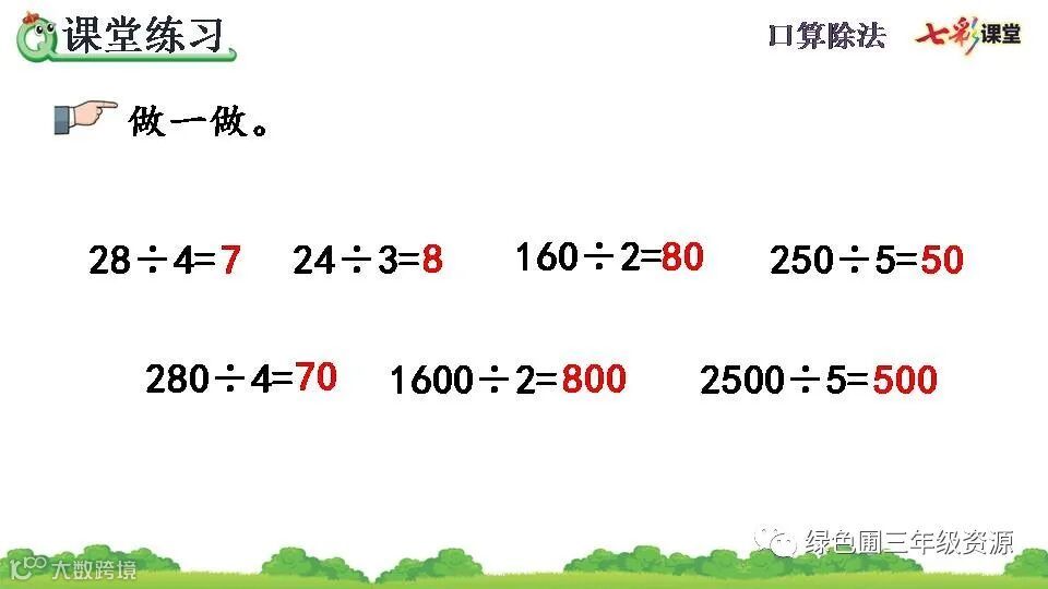 (1)独立完成下面两道除法算式题,请两名同学板演。